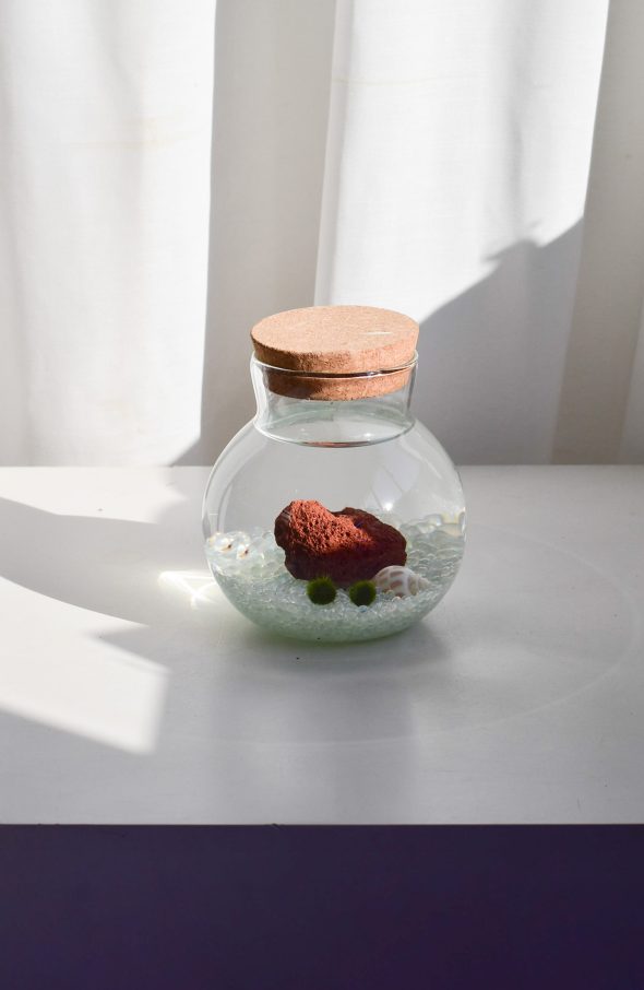 Marimo moss balls are balls of algae with a velvety appearance. They can be found only in a few lakes in the world, such as in Japan, Scotland and Estonia. In Japan, marimo moss balls are commonly gifted amongst families, lovers and friends as they signify longevity and close bonds. They can live up to 200 years so some Japanese pass them down to the next generation as heirlooms. The circular motion of the sea currents keep them round. Marimo moss balls provide oxygen for the shrimps and has a micro bacteria film which the shrimps feed on.